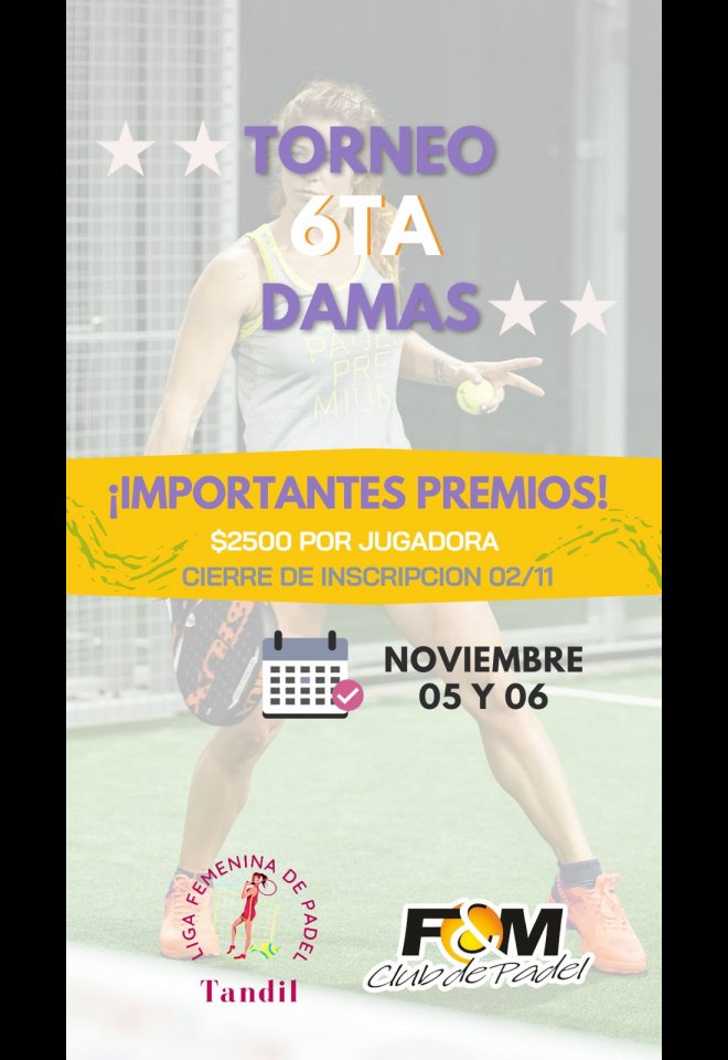 »» Evento: Torneo 6ta damas »» Localidad: Tandil »» Fechas: 05/11/2022 al 06/11/2022